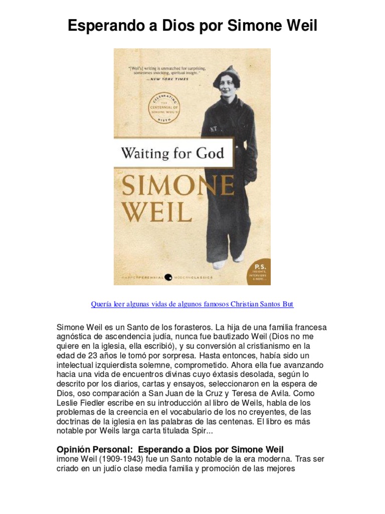 Esperando A Dios Por Simone Weil - Averigüe Por Qué Me Encanta! | PDF ...
