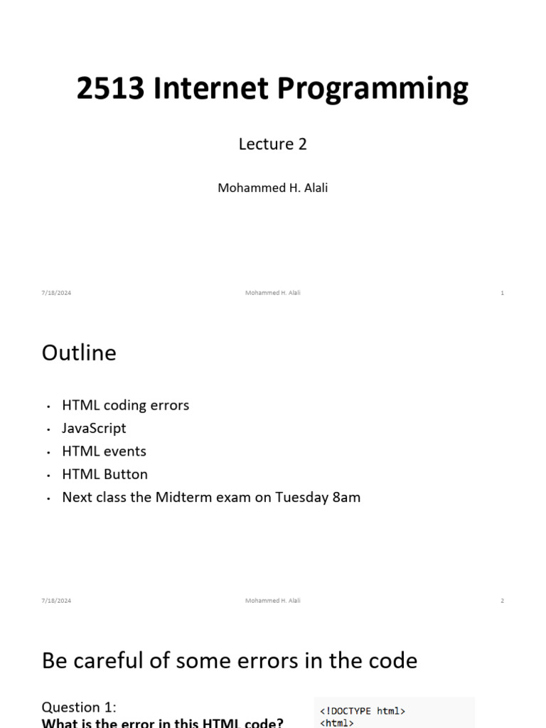 2513 Lecture2 | PDF | Html | Java Script