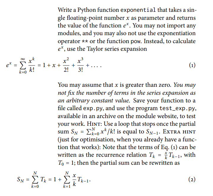 Solved Write a Python function exponential that takes a sin- | Chegg.com