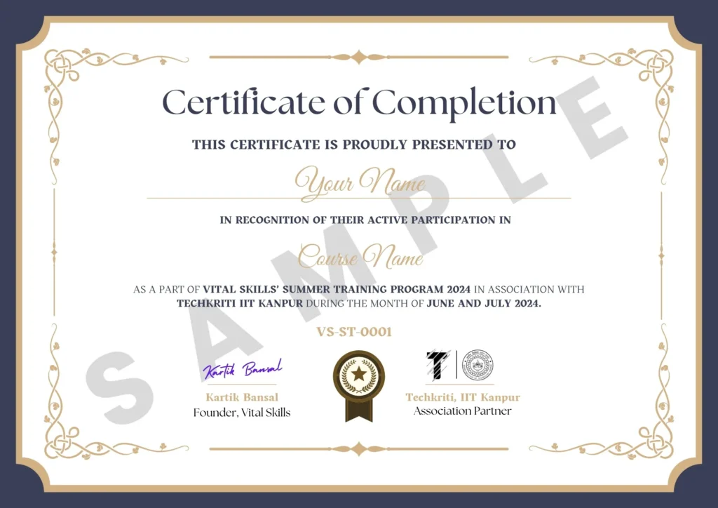 Winter Internship Techkriti IIT Kanpur - Vital Skills