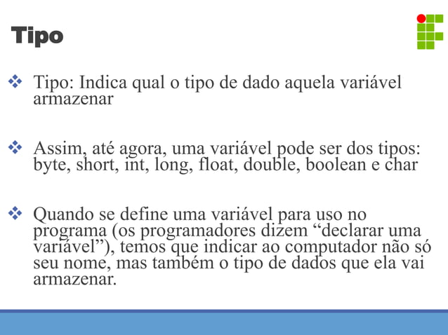 Poo1 aula 4 - tipos de dados variáveis-constantes | PPT