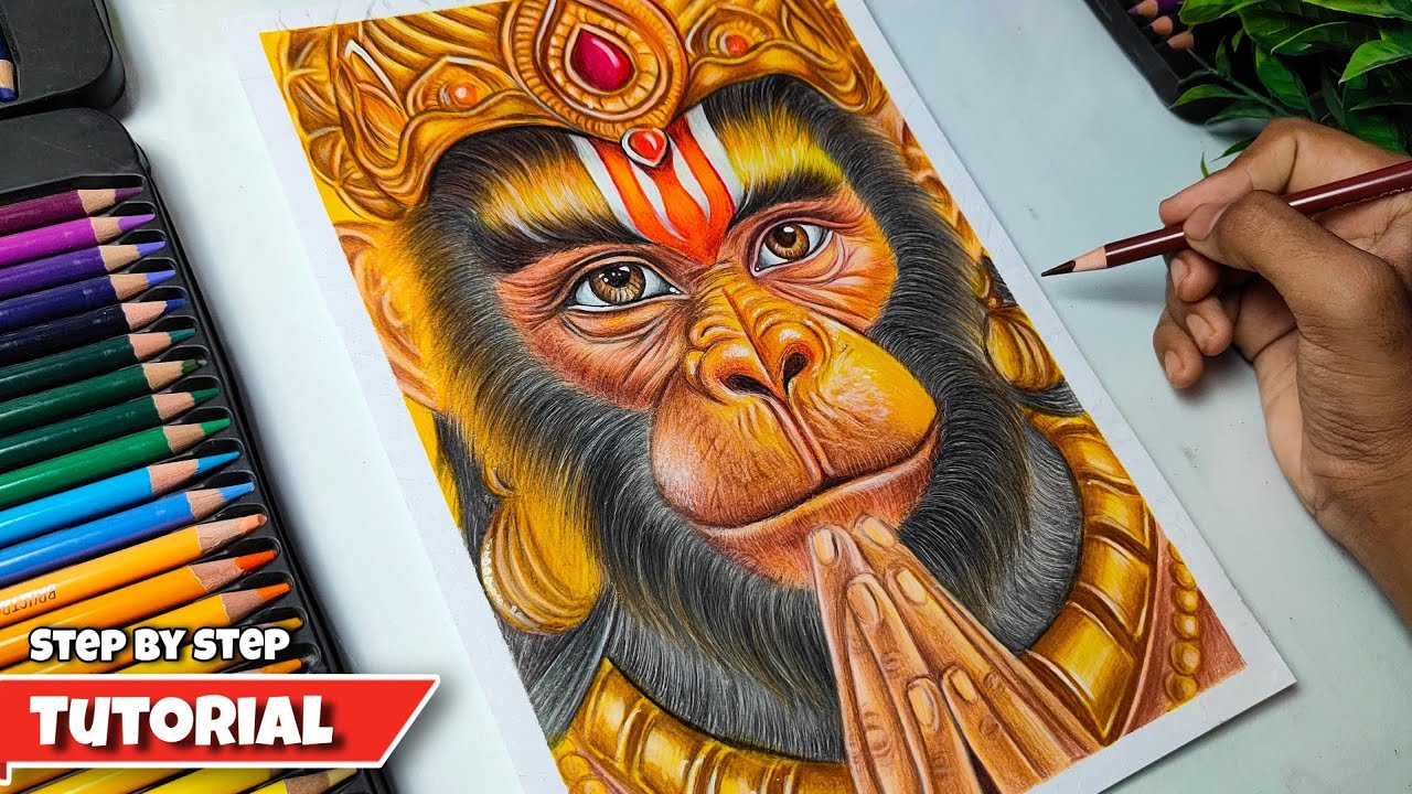 "How to draw || Lord Hanuman Ji drawing || Detail stap by step Tutorial ...