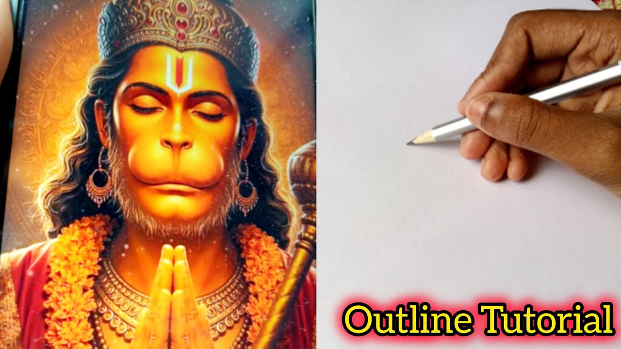 Hanuman Ji Outline Tutorial.😍 How to draw hanuman ji.Hanuman Jayanti ...
