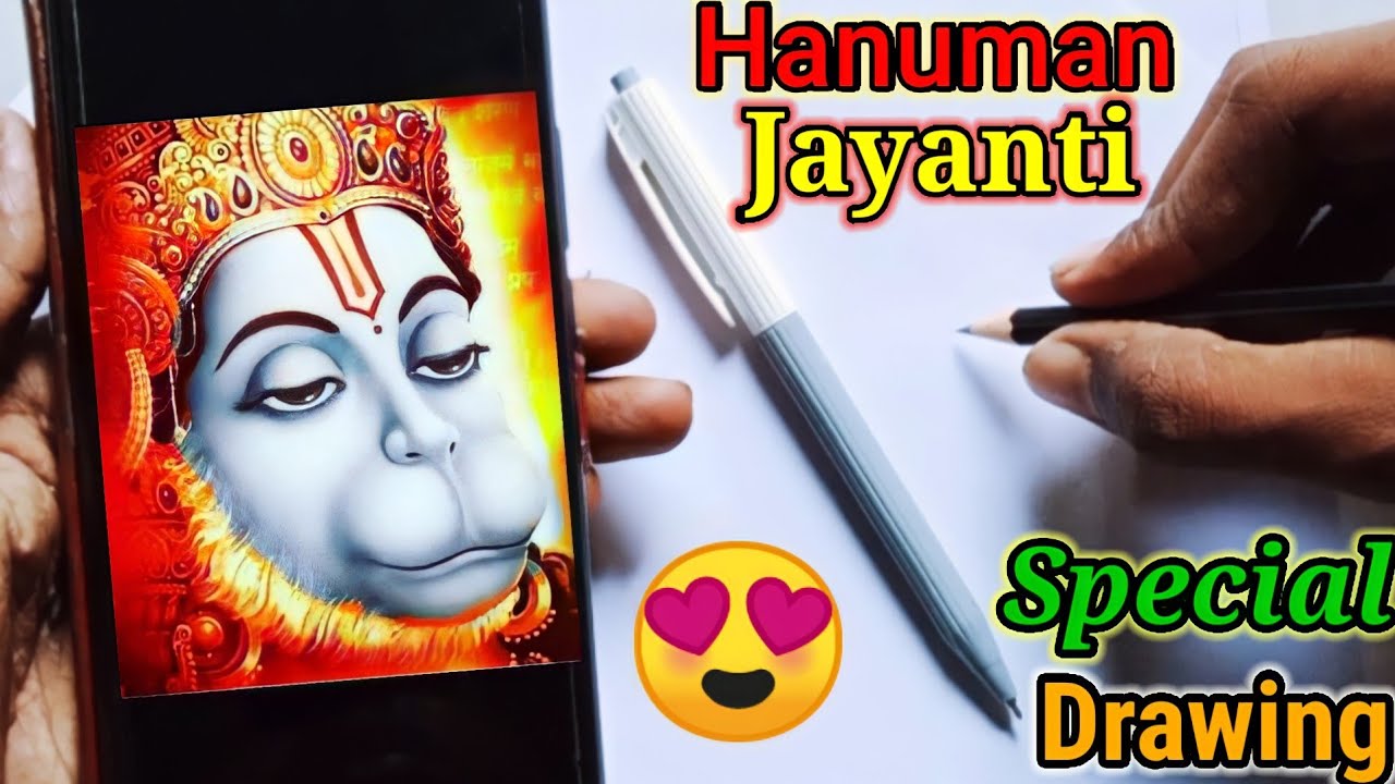 Hanuman Jayanti special drawing , Hanuman Ji face drawing, Bal Hanuman ...