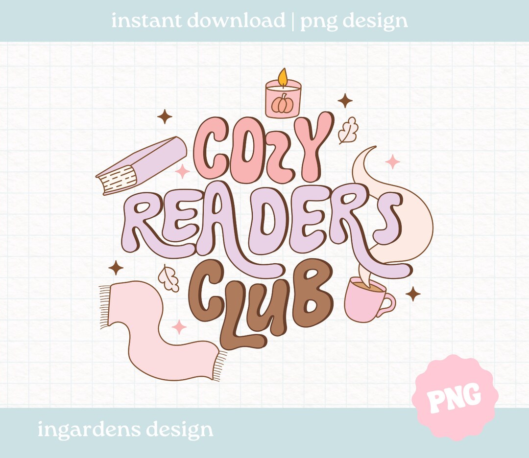 Cozy Readers Club PNG, Bookish Png, Digital Download Art for T-shirt ...