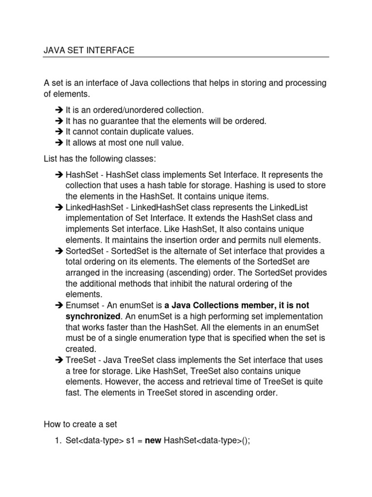 Java Set Interface | PDF | Algorithms And Data Structures | Object ...