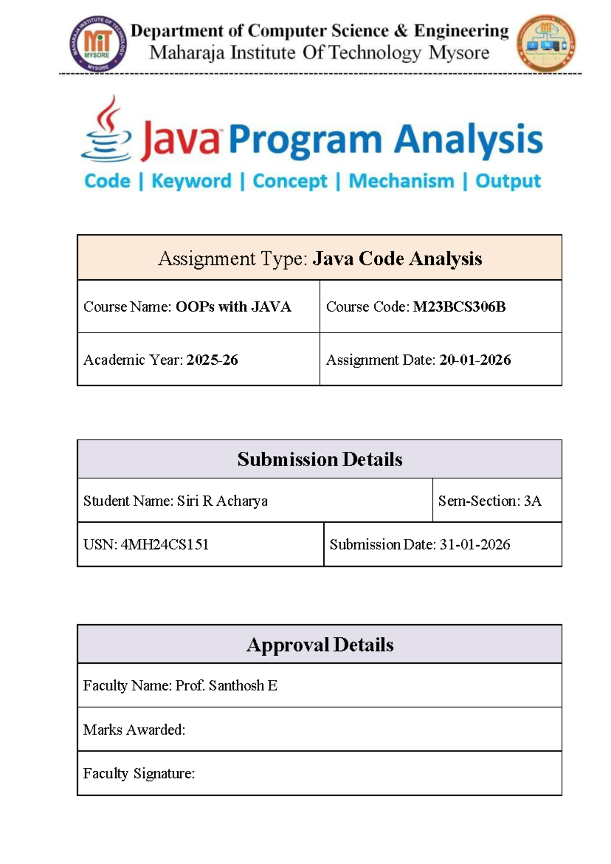 Java Code Analysis and Implementation - OOPs with JAVA (M23BCS306B ...