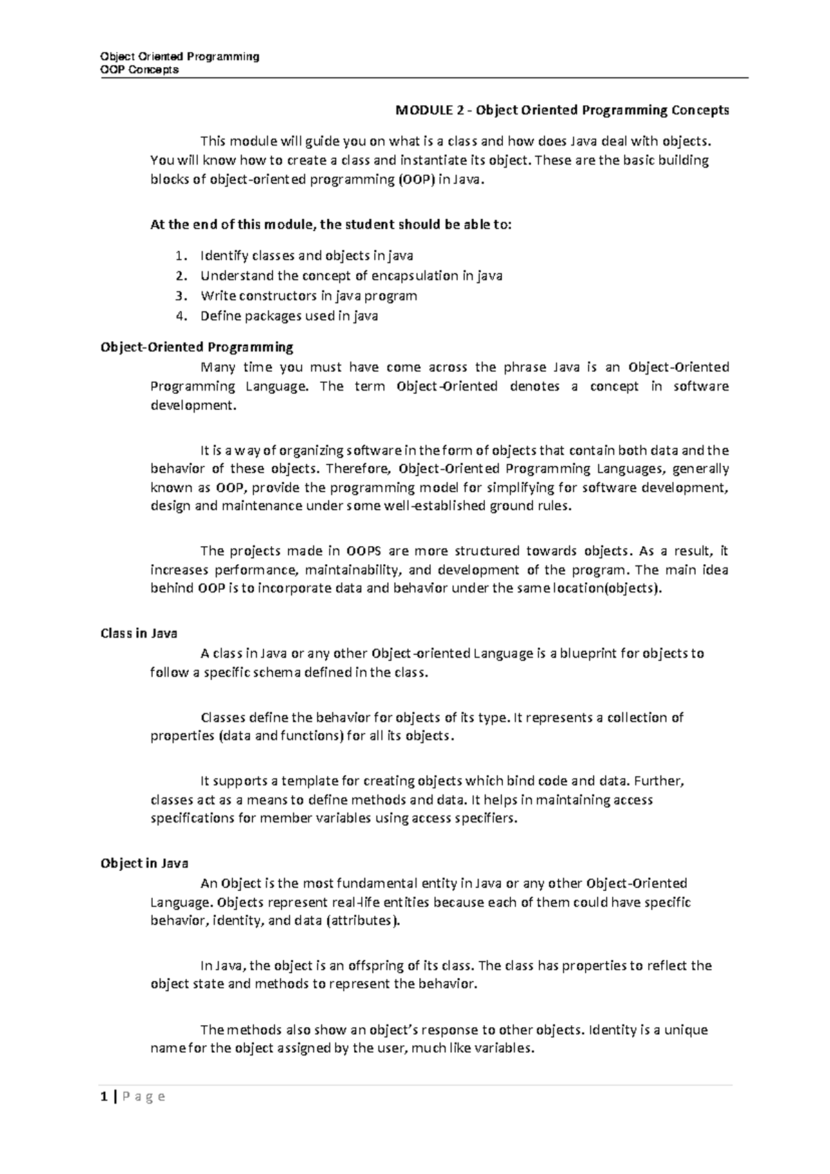 Java Fundamentals: Class & Objects Program Overview - Studocu