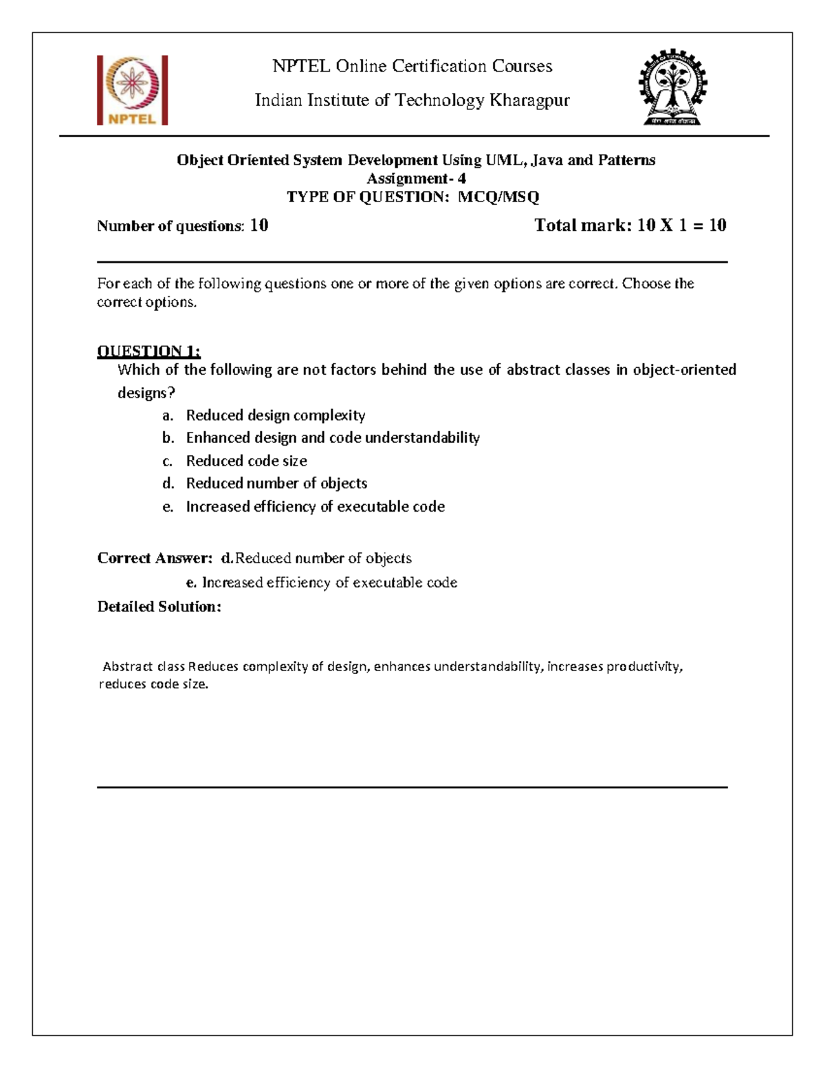 OOSD-Assignment 4: Object Oriented System Development Questions - Studocu