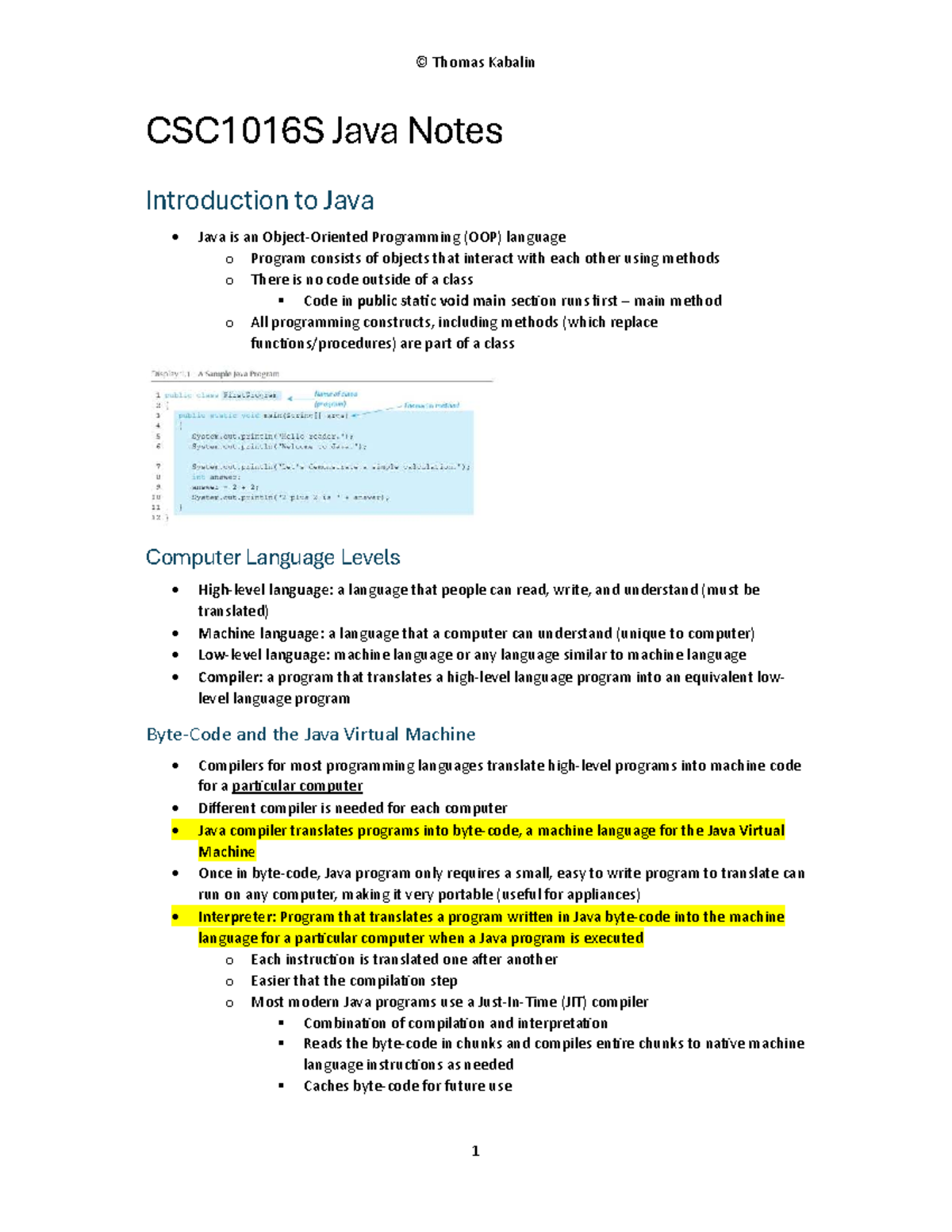 CSC1016S Final Exam Java Notes: Key Concepts and Techniques - Studocu