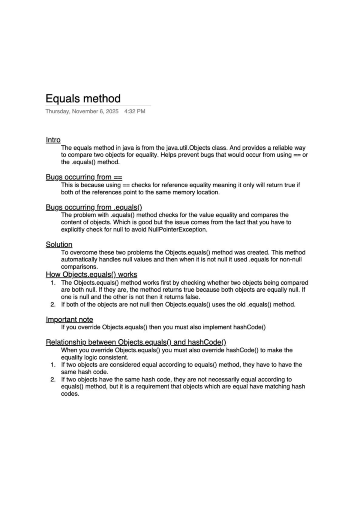 Equals Method in Java: Understanding Objects.equals() Function - Studocu