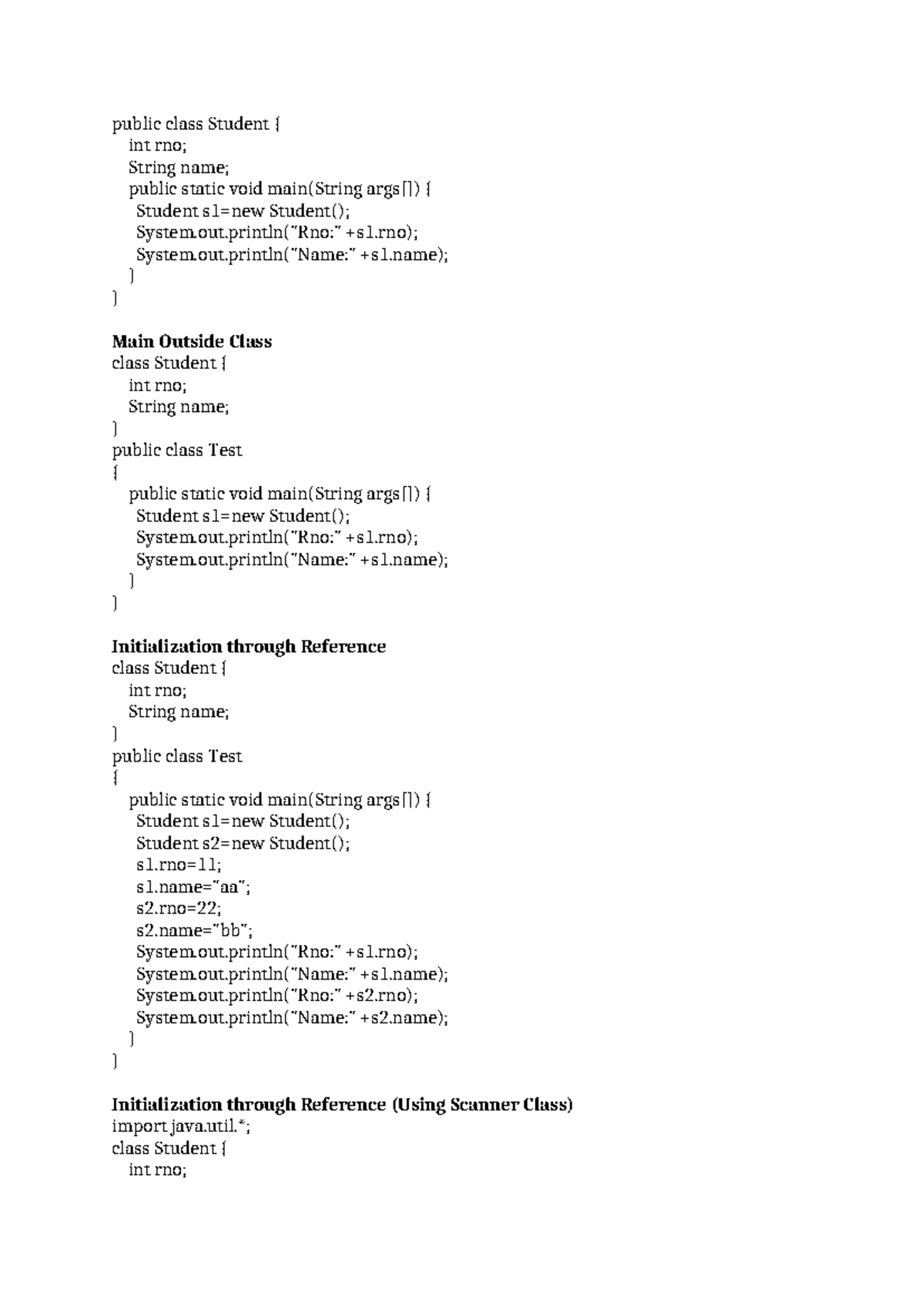 JAVA NOTES: Introducing Classes and Object