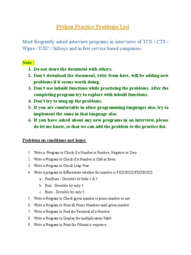 Practice Python Questions and Challenges For Beginners - PDFCOFFEE.COM