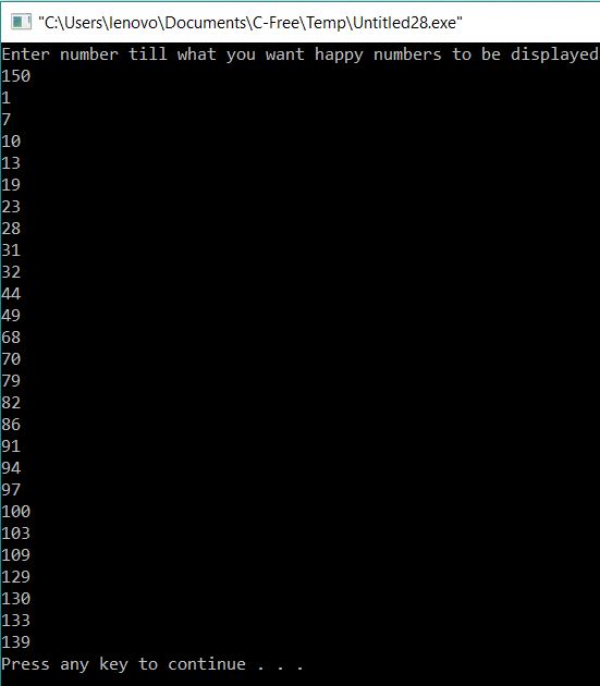 All C Programs: Program 268: Program to print all Happy Numbers till N
