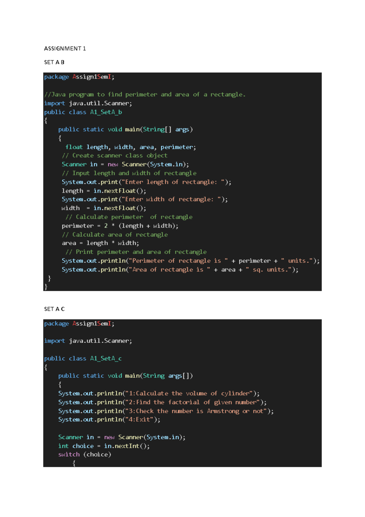JAVA Assignment CLG - java notes - ASSIGNMENT 1 SET A B package ...