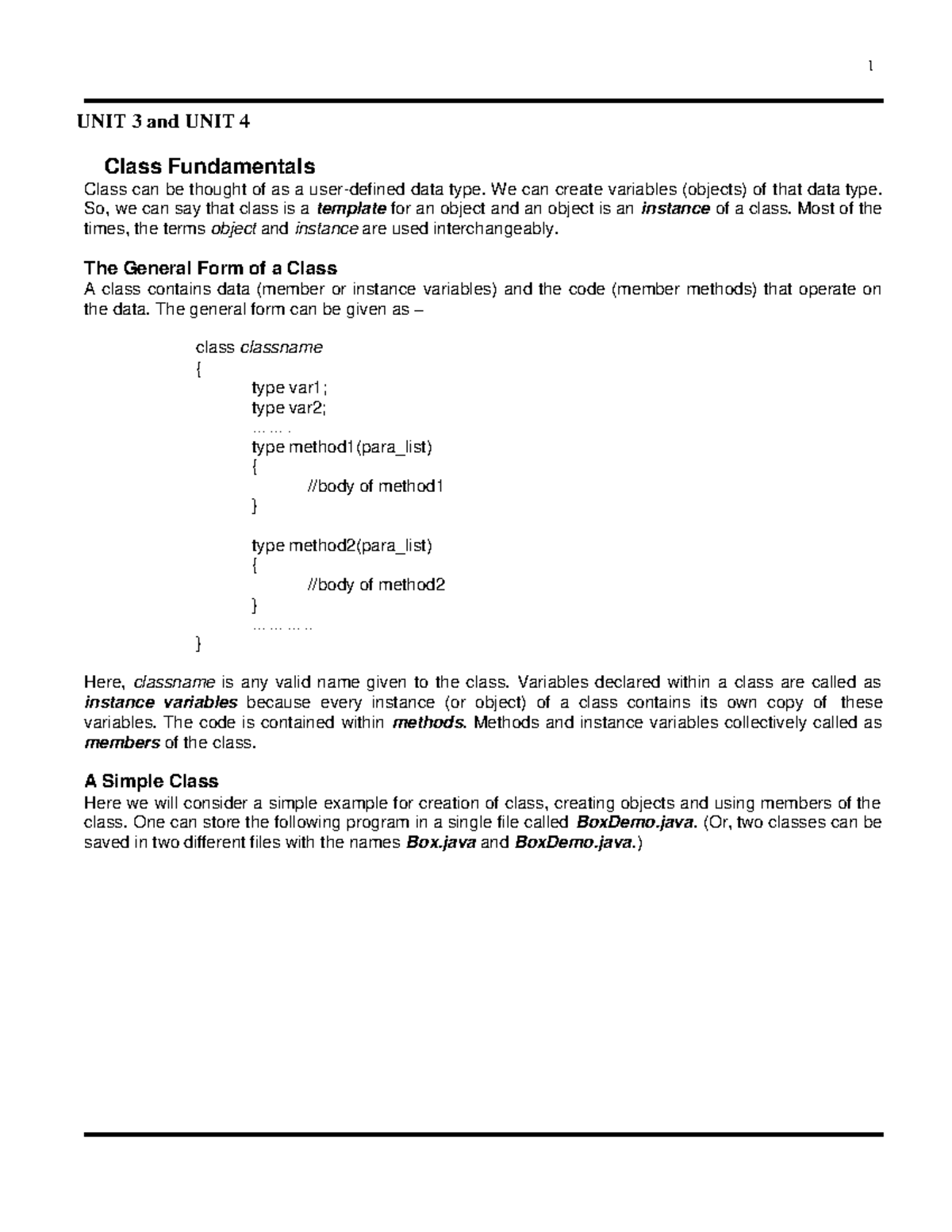 JAVA UNIT-I Notes: Object Oriented Programming Concepts in Java - Studocu