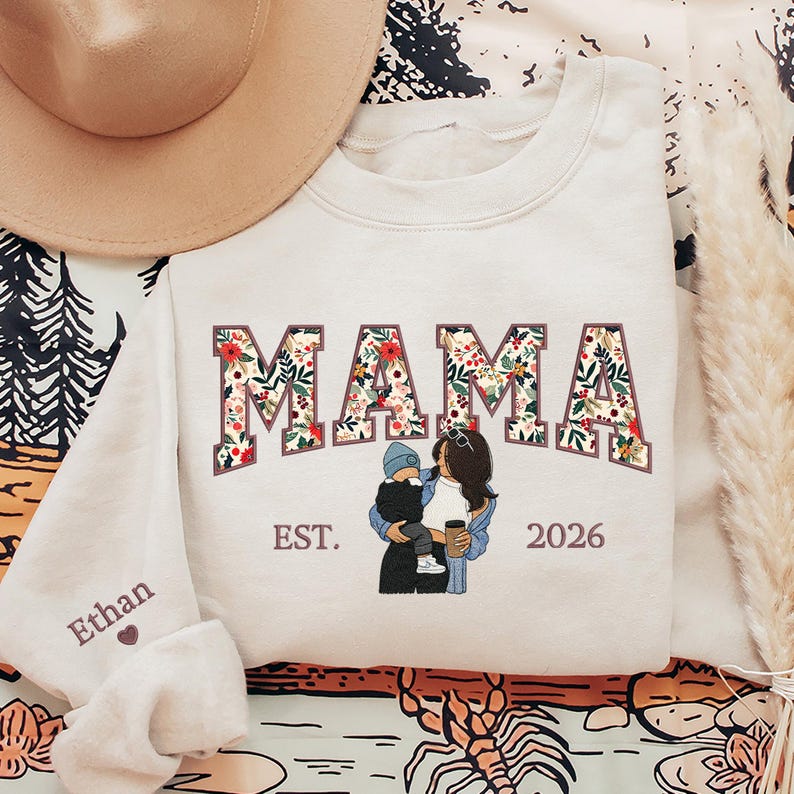 Personalized Floral Embroidered Mama Sweatshirt with Portrait and ...