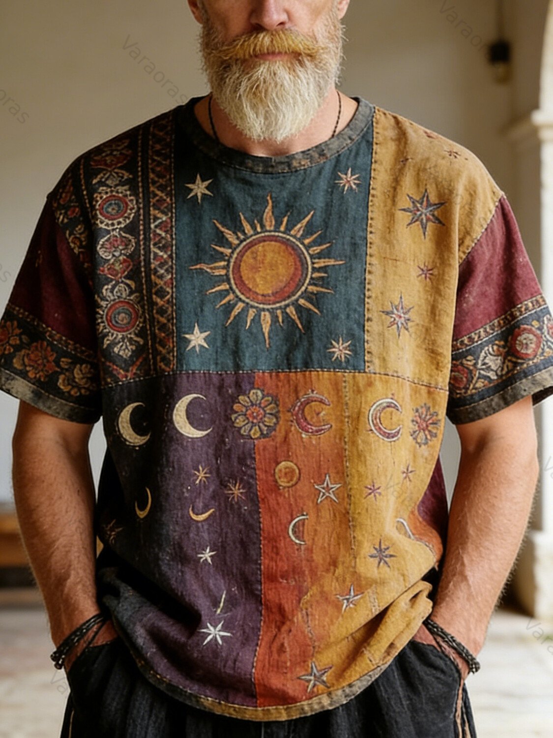 Modern Unique Satin Landscape Print Loose Oversized Shirt