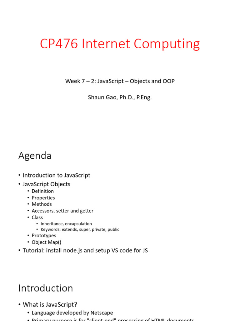 CP476 Internet Computing Week 7 2 JS Objects | PDF | Java Script ...