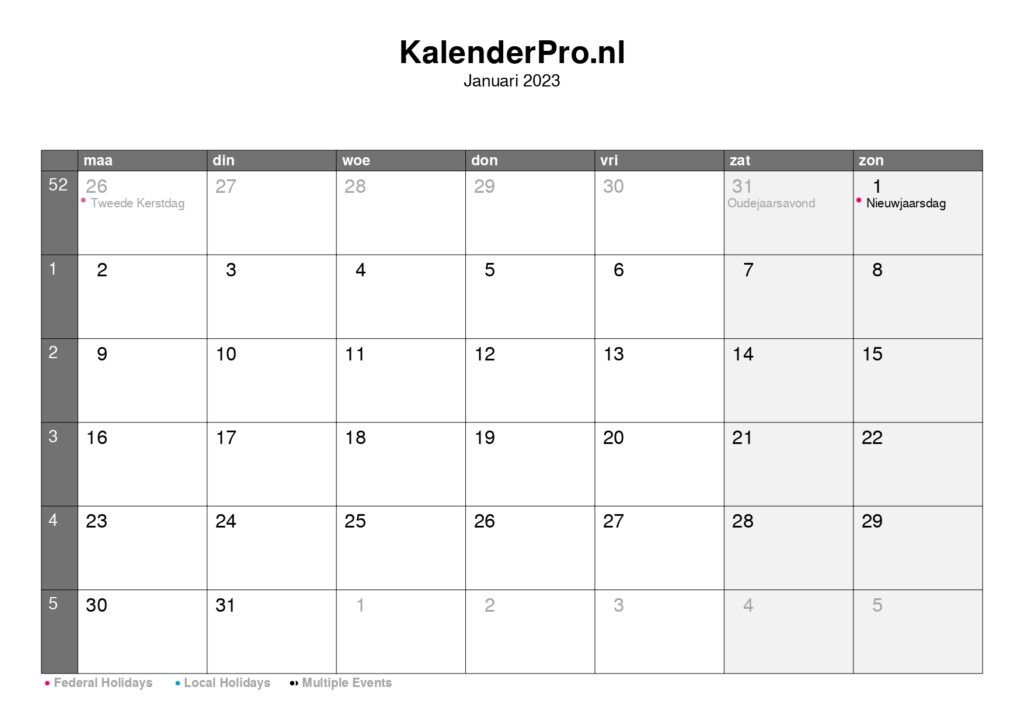De online kalender 2023 is overzichtelijk en gemakkelijk te printen ...