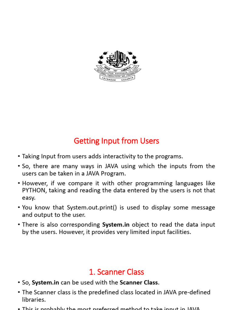 User Input Handling in Java with Scanner | PDF | Input/Output ...