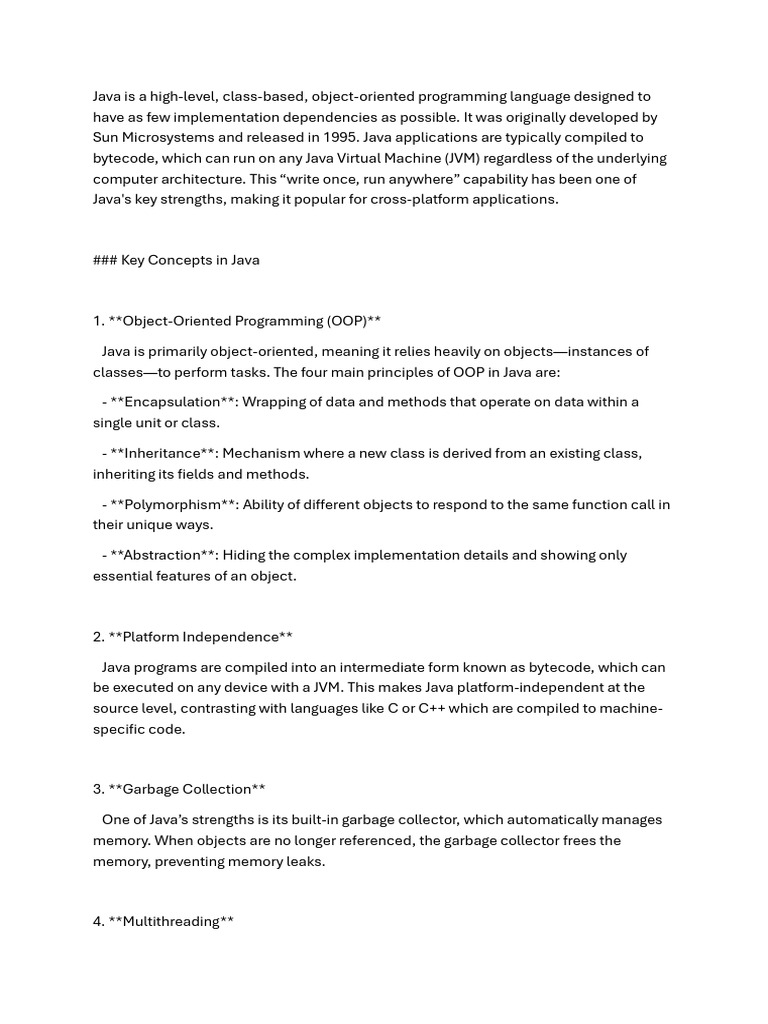A Comprehensive Overview of Key Java Concepts Including Its ...