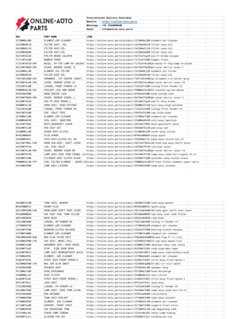 Maruti Suzuki Car Spare Parts 1 | PDF