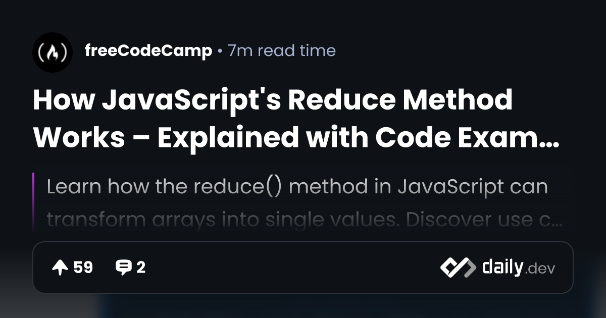 Mastering the `array.reduce()` Method in JavaScript : r/DevTo
