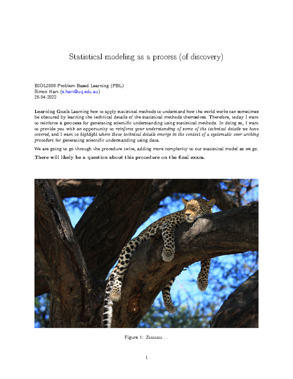 BIOL2006 PBL Week8 Revision and Procedure - Statistical modeling as a ...