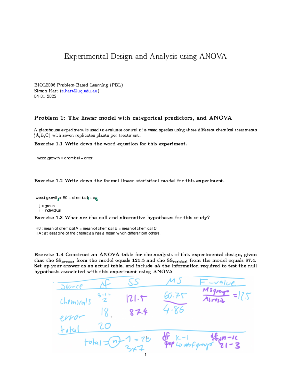 Week 6 PBL Worksheet - Experimental Design and Analysis using ANOVA ...