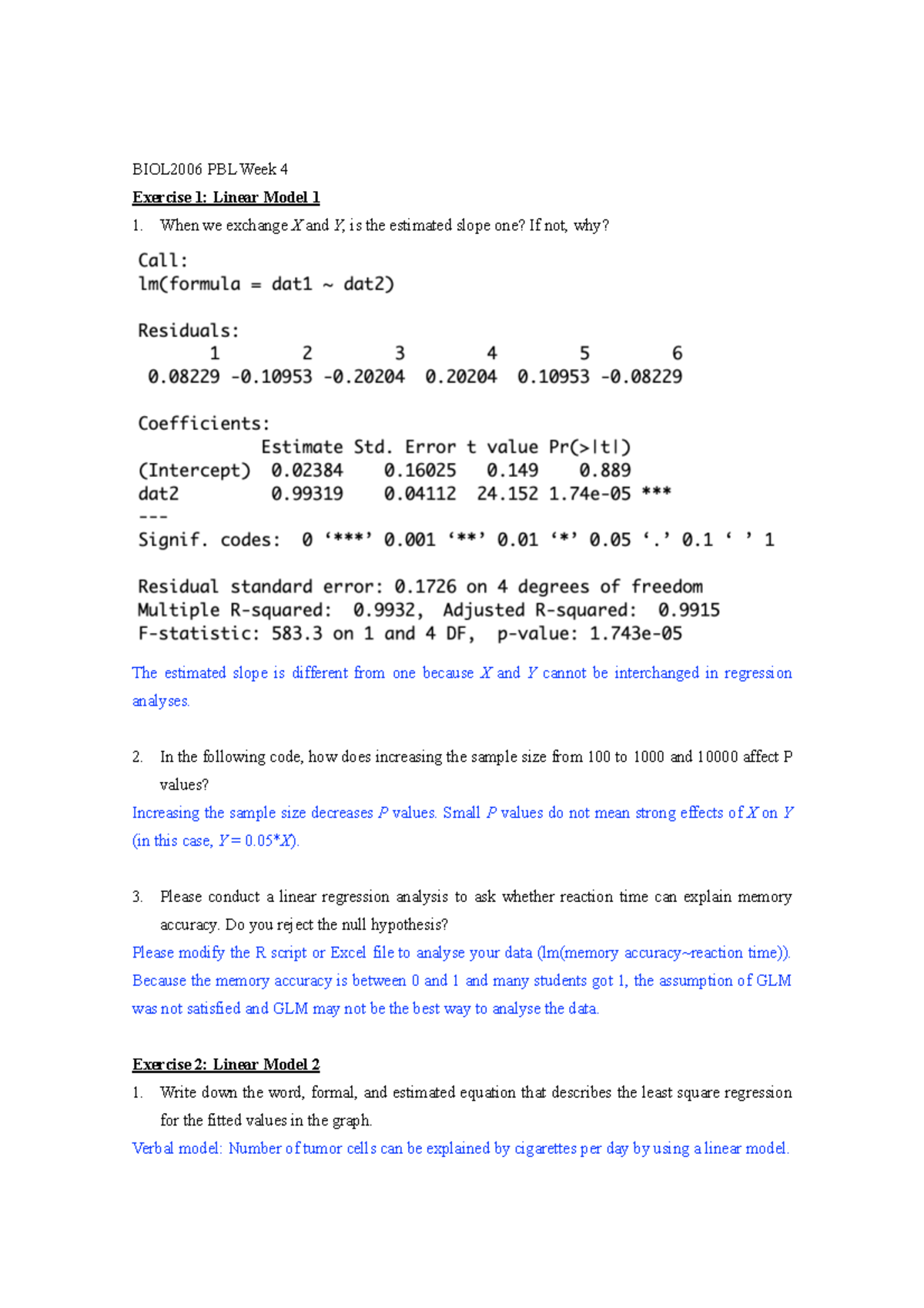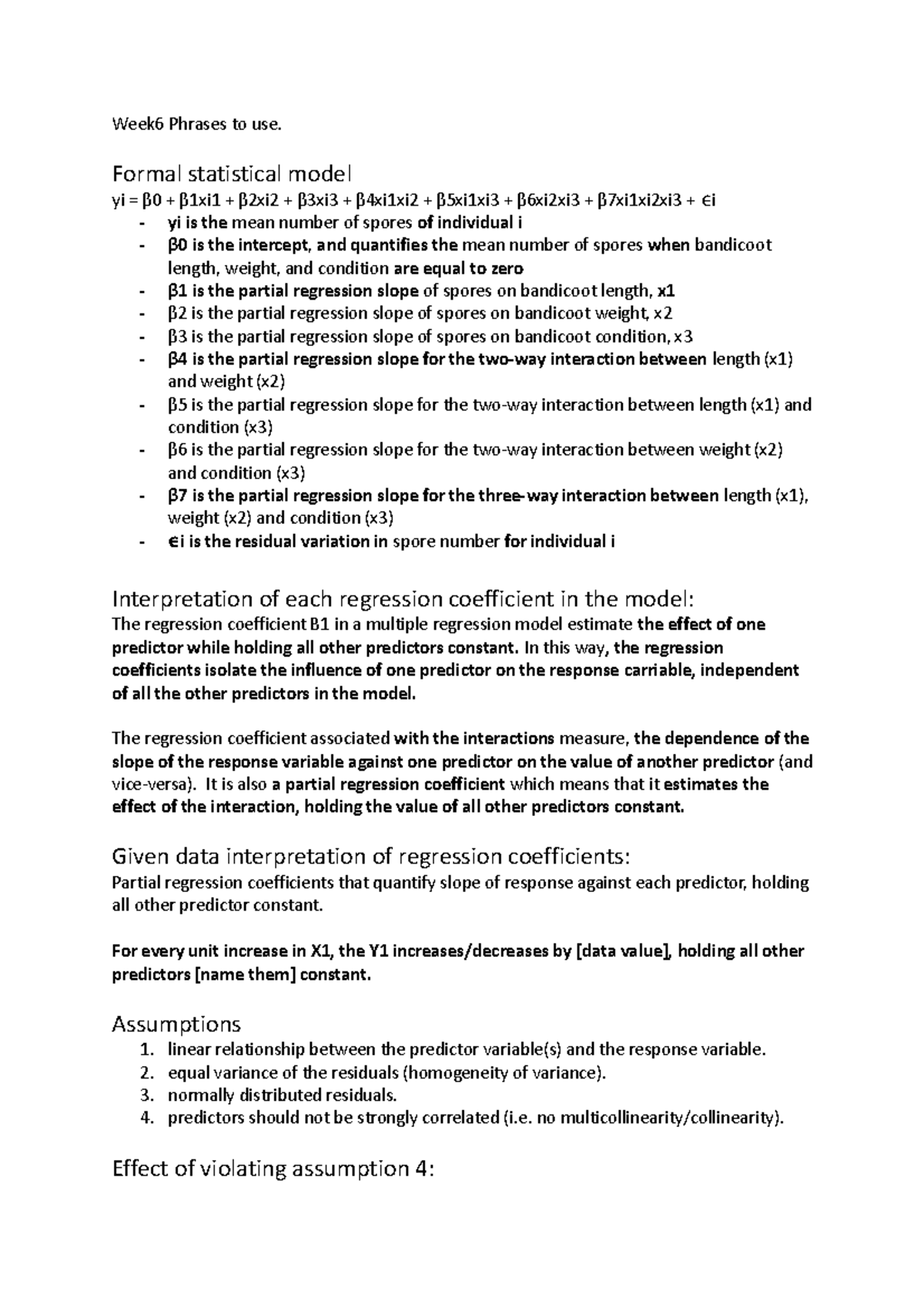 Regression Coefficient - BIOL2006 - Studocu