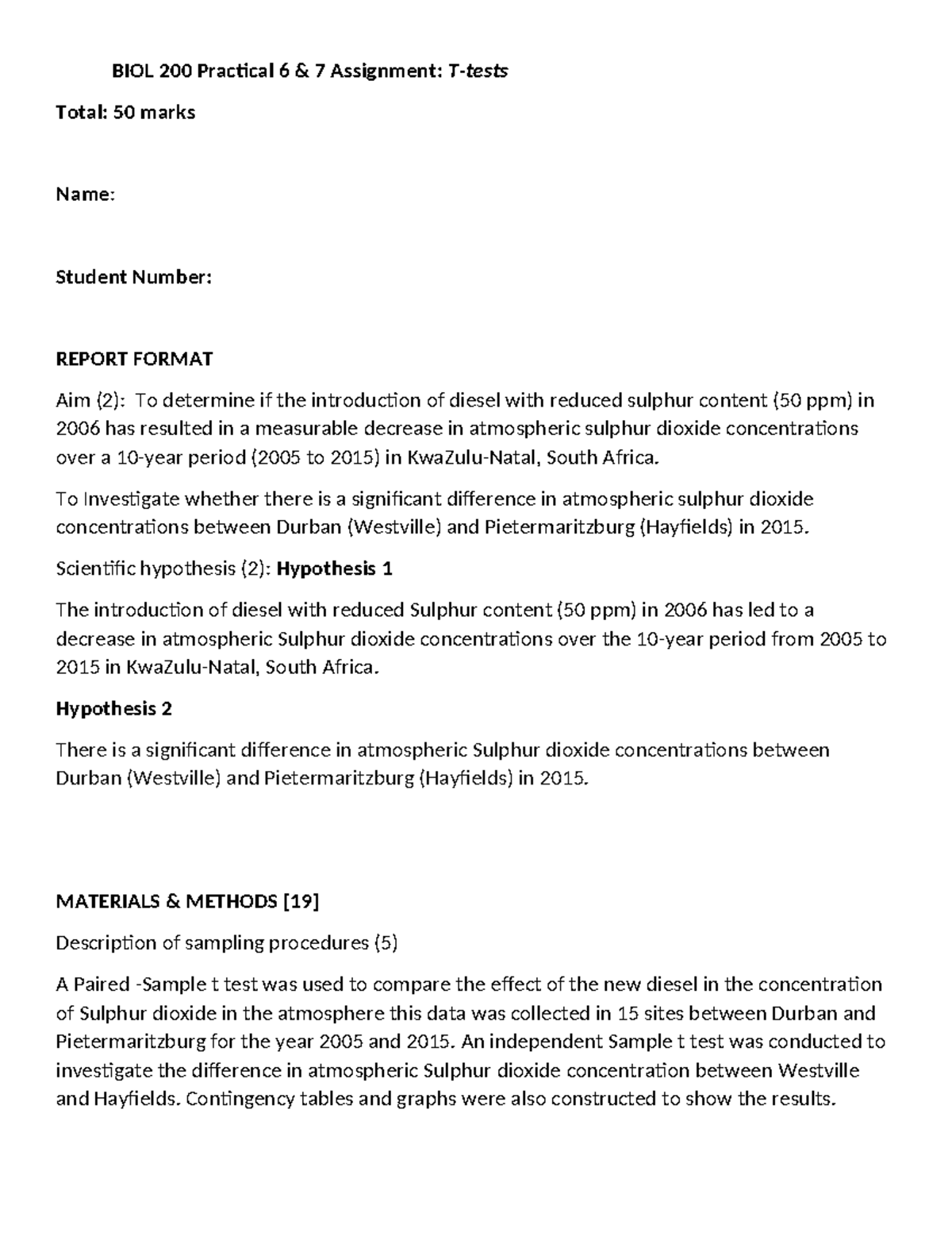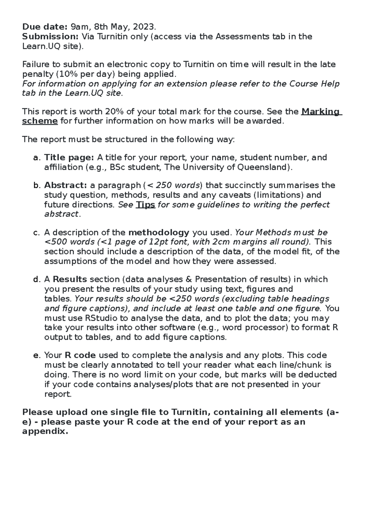 Instructions and criteria - BIOL2006 Report - Due date: 9am, 8th May ...