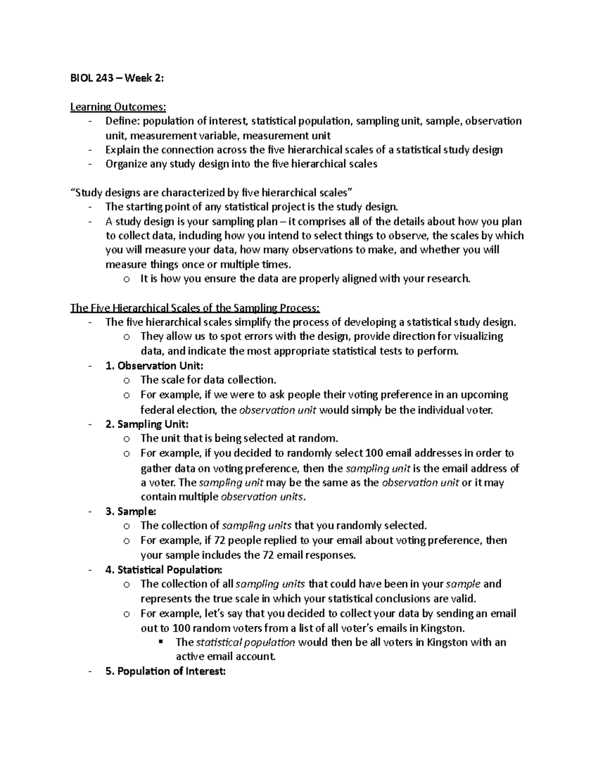 Week 6 - Week 6 notes - BIOL 243 – Week 6 Module 7: Sampling ...