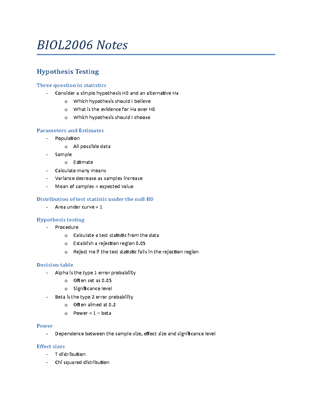 Biostats Summary | BIOL2006 - Biostatistics & Experimental Design - UQ ...