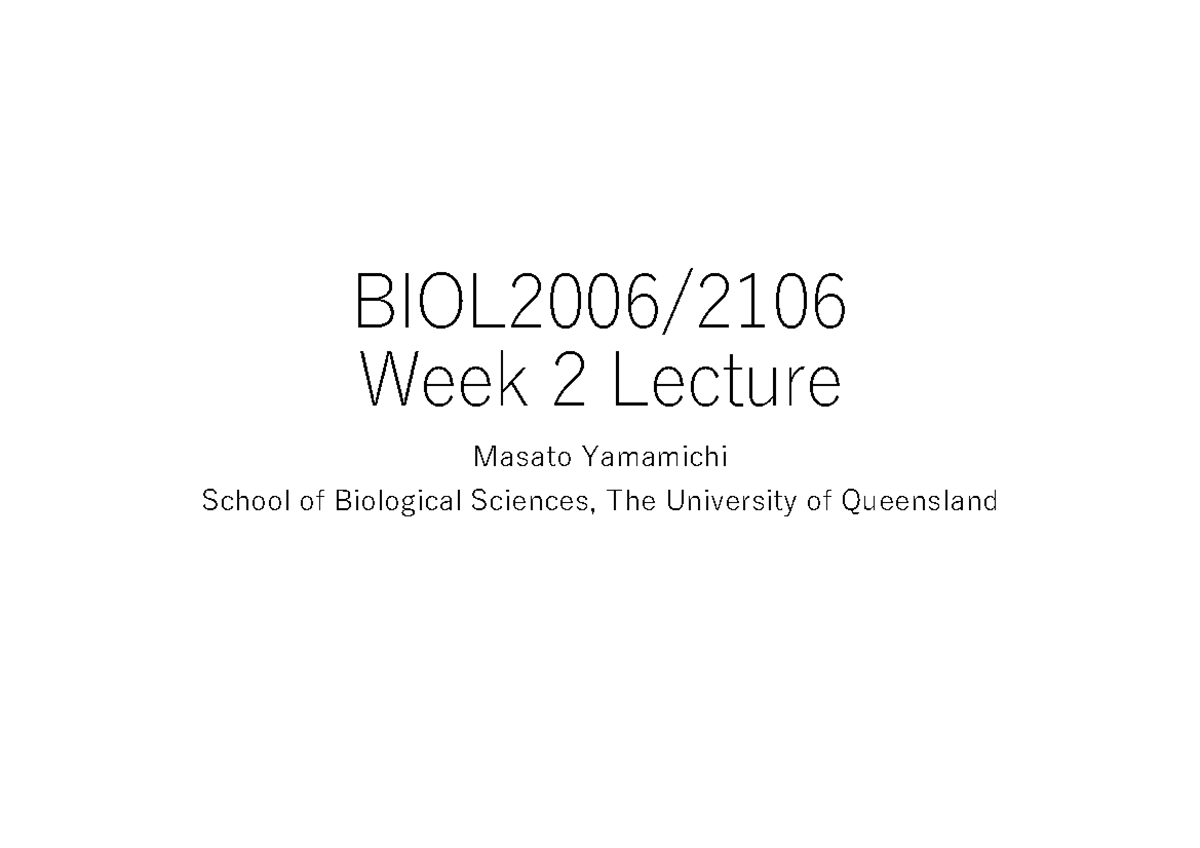 Week 2 lecture notes - BIOL2006/ Week 2 Lecture Masato Yamamichi School ...