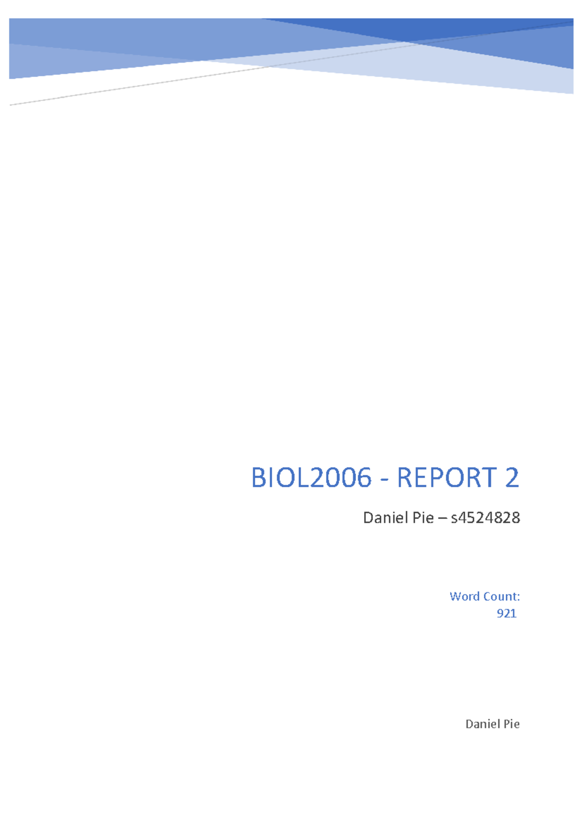 BIOL2006 Report 2 Outline - Daniel Pie Word Count: 921 BIOL2006 ...