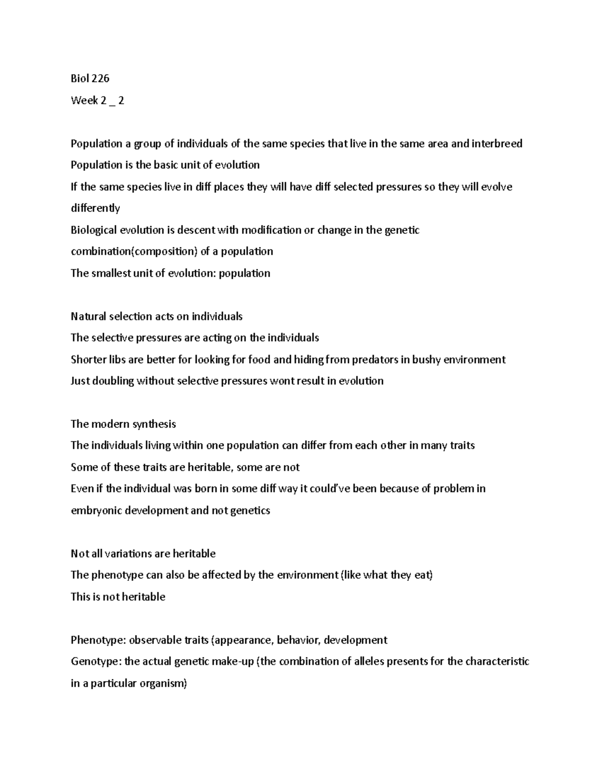 Biol 226 week 2 2 - lecture notes - Biol 226 Week 2 _ 2 Population a ...