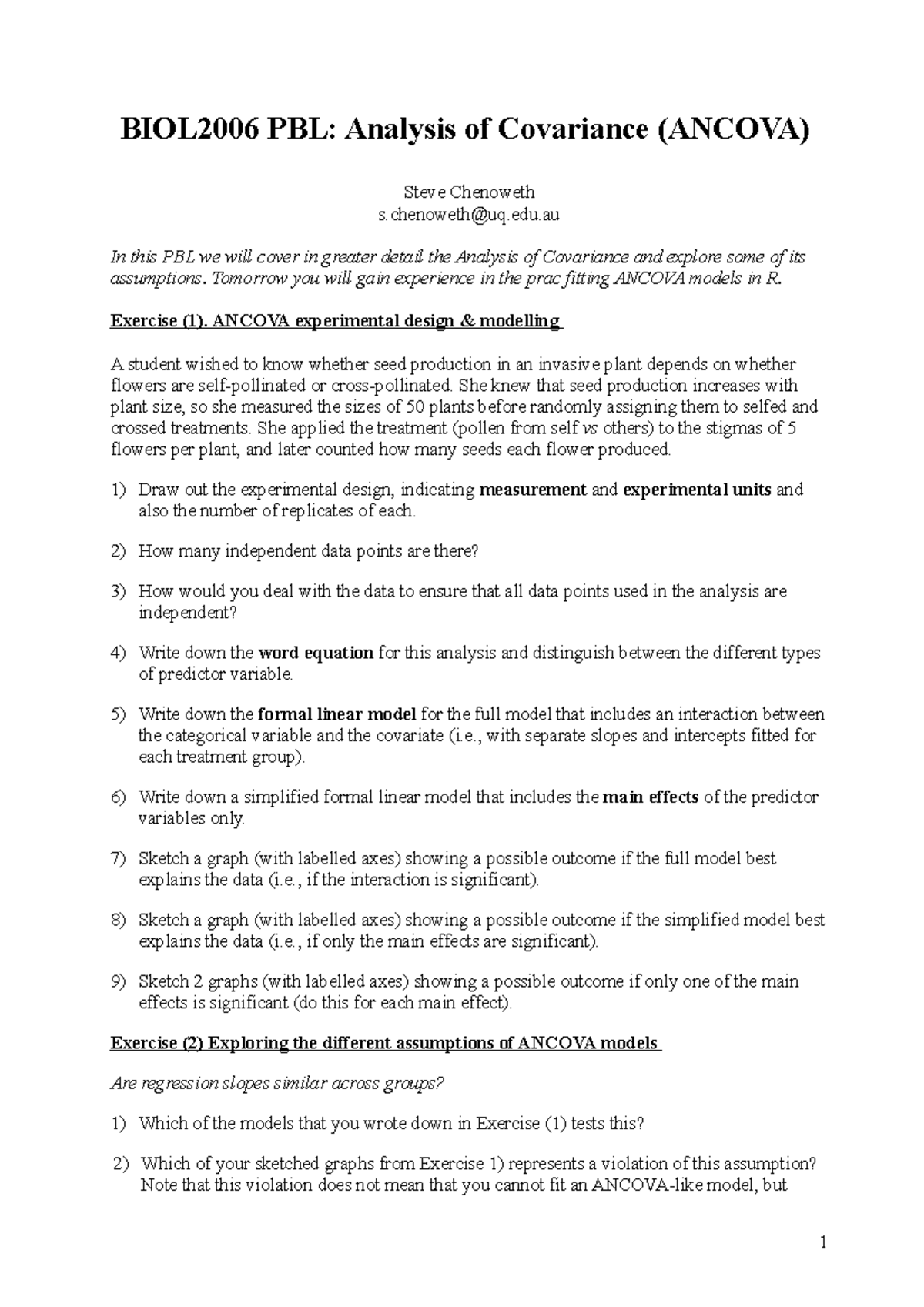 PBL Week 7 Ancova BIOL2006 Handout 2021 - BIOL2006 PBL: Analysis of ...