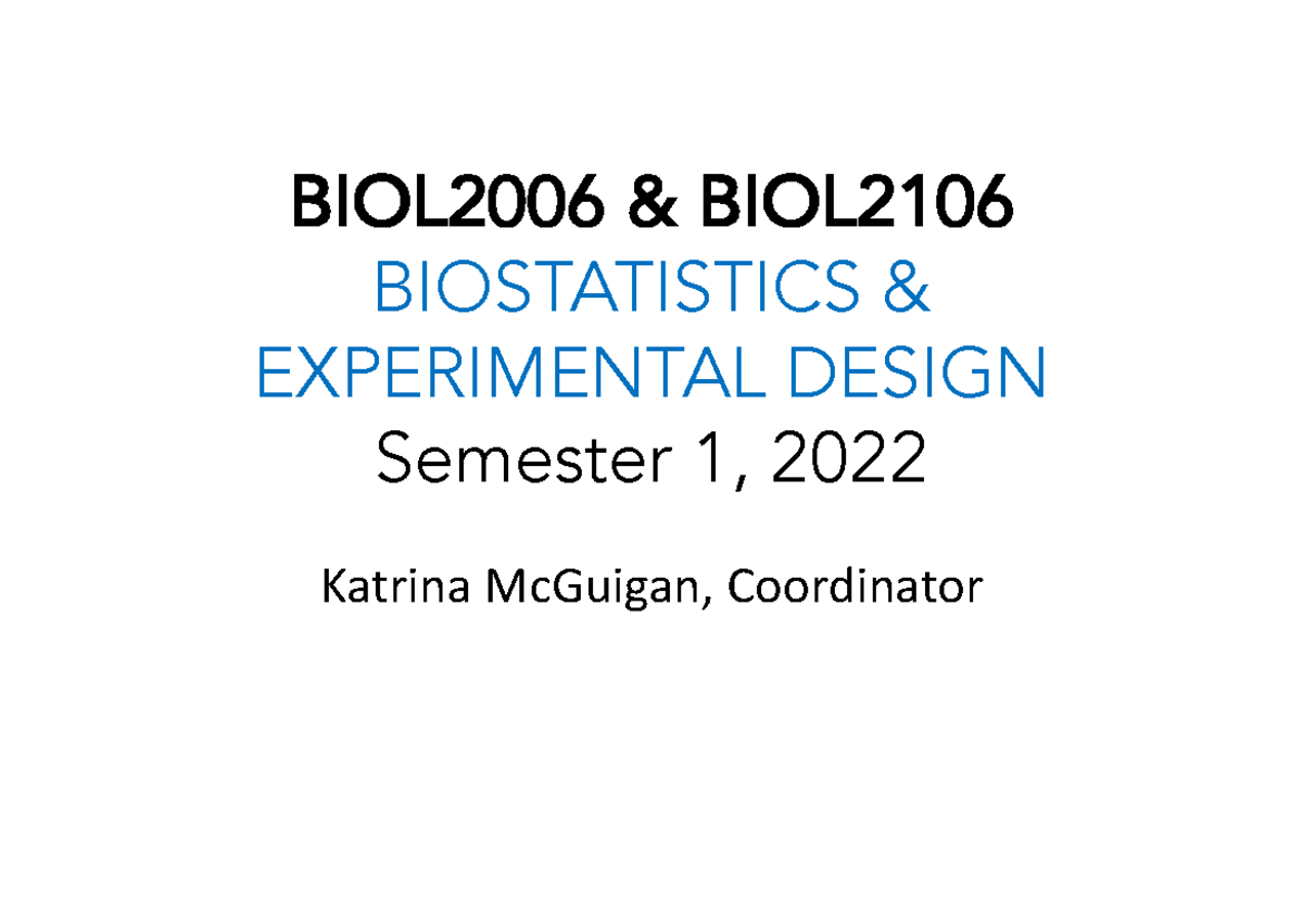 Week 1 lecture notes - BIOL2006 & BIOL 2106 BIOSTATISTICS ...