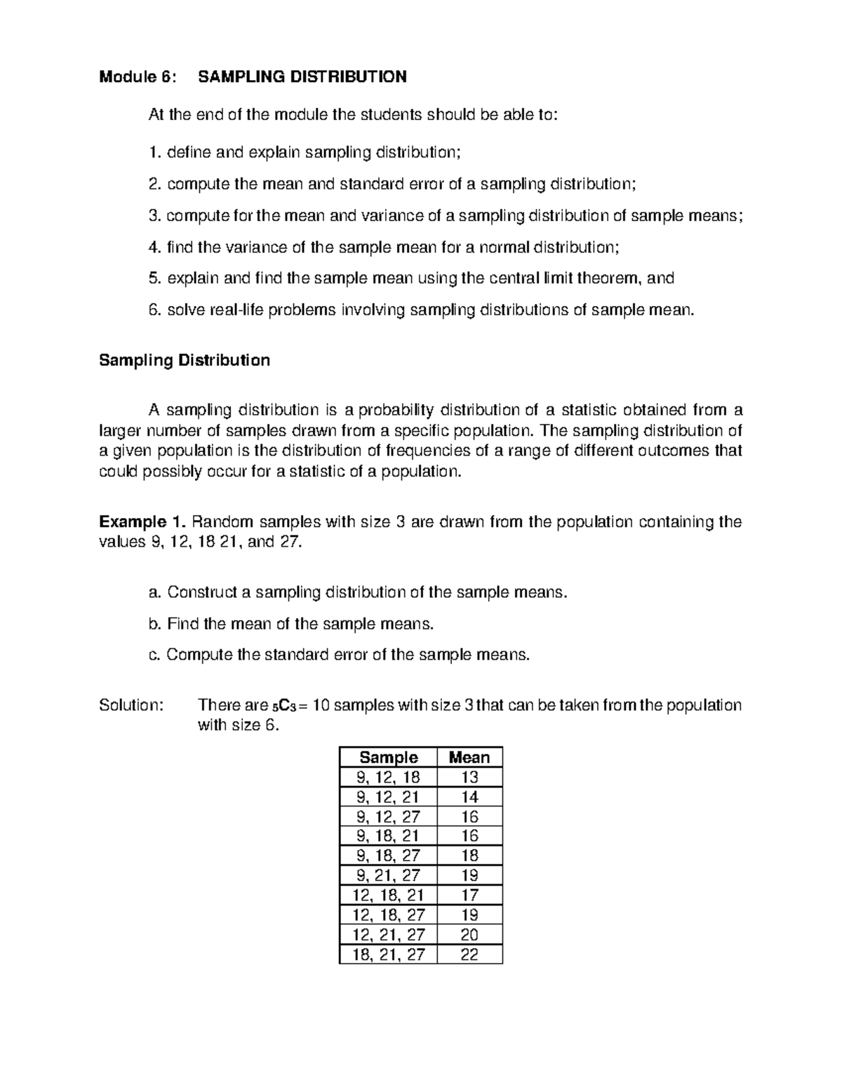 Module 6 - Module 6 : SAMPLING DISTRIBUTION At the end of the module ...