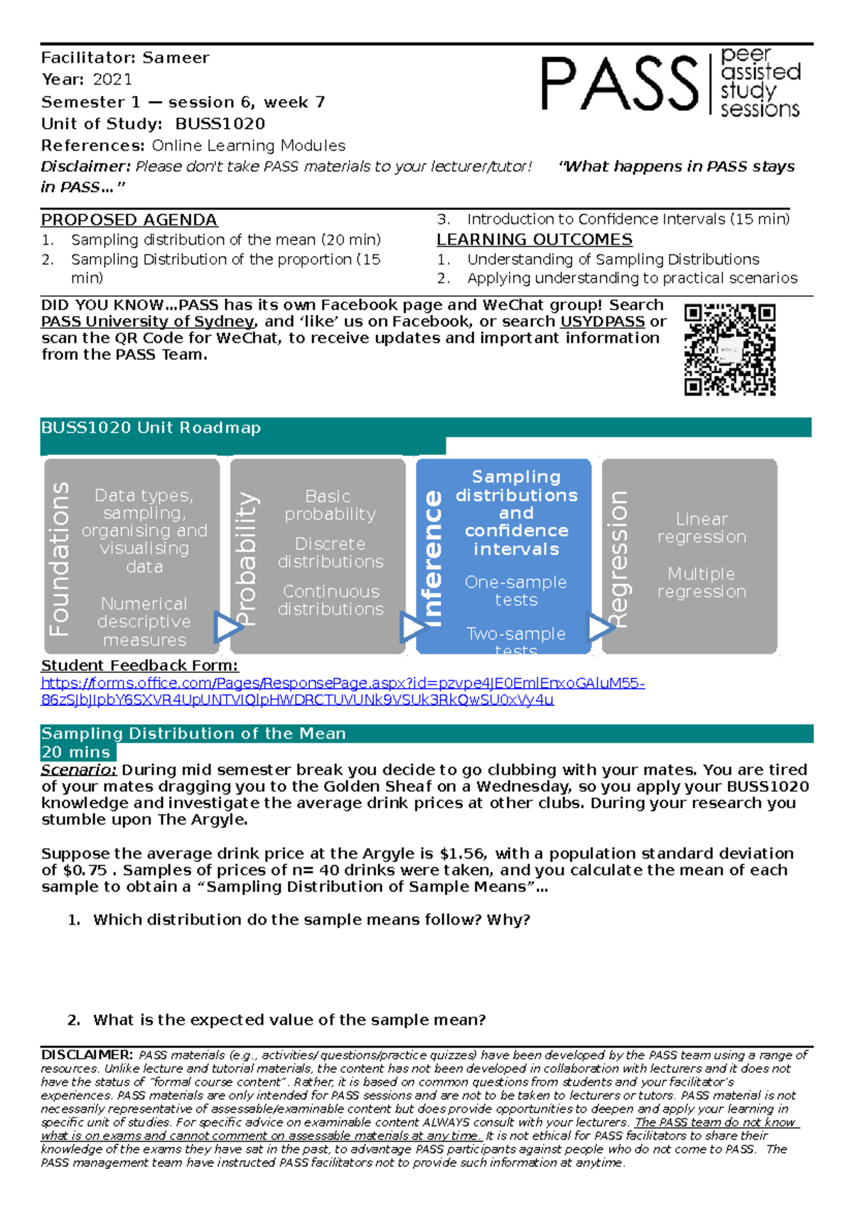 Session 6, Week 7, Sampling Distributions - Facilitator: Sameer Year ...