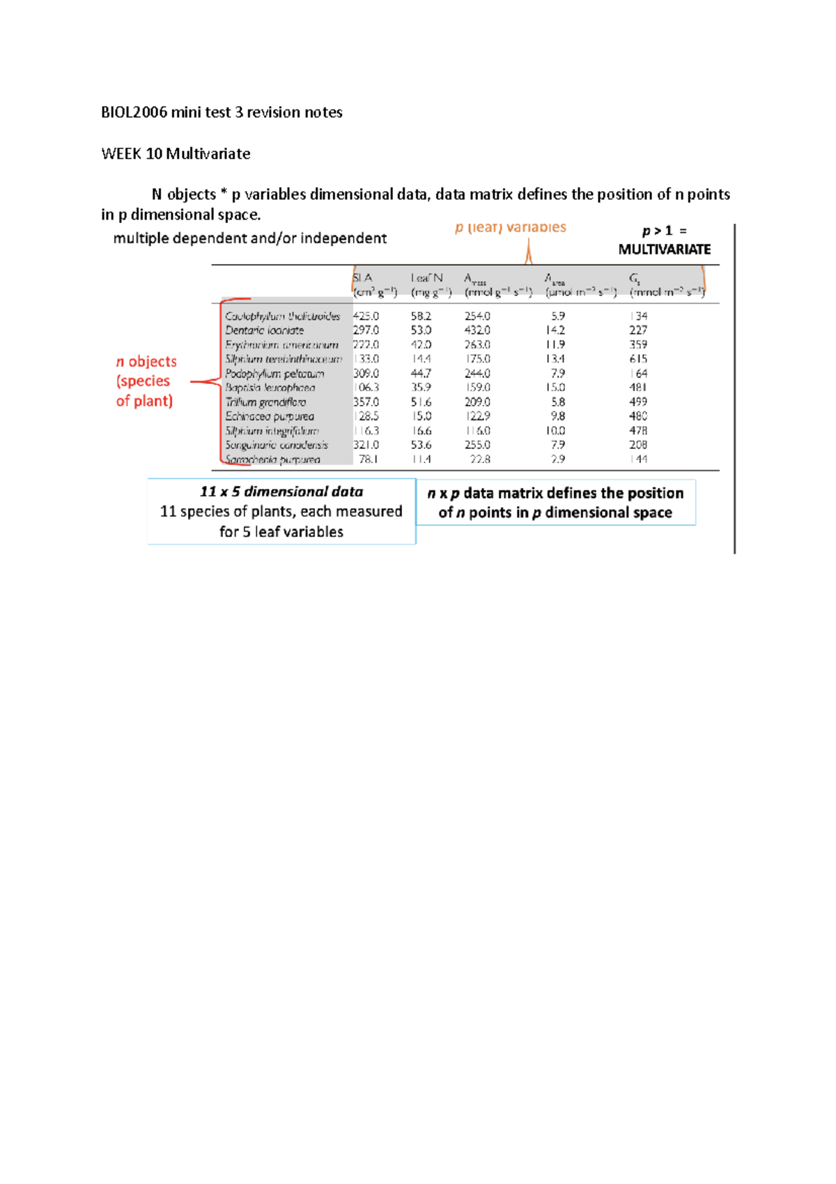BIOL2006 mini test 3 revision notes - Describe the data cloud in ...