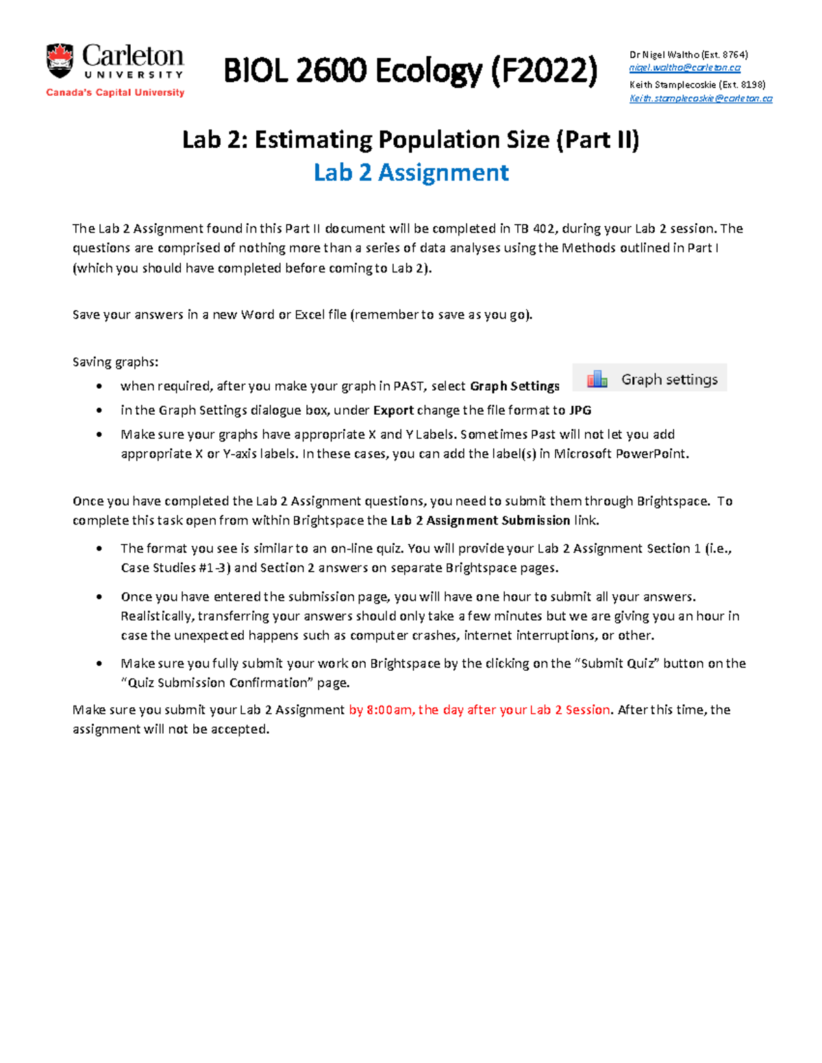 Lab 2 - Part II (2600-F22) - BIOL 2600 Ecology (F202 2 ) Dr Nigel ...