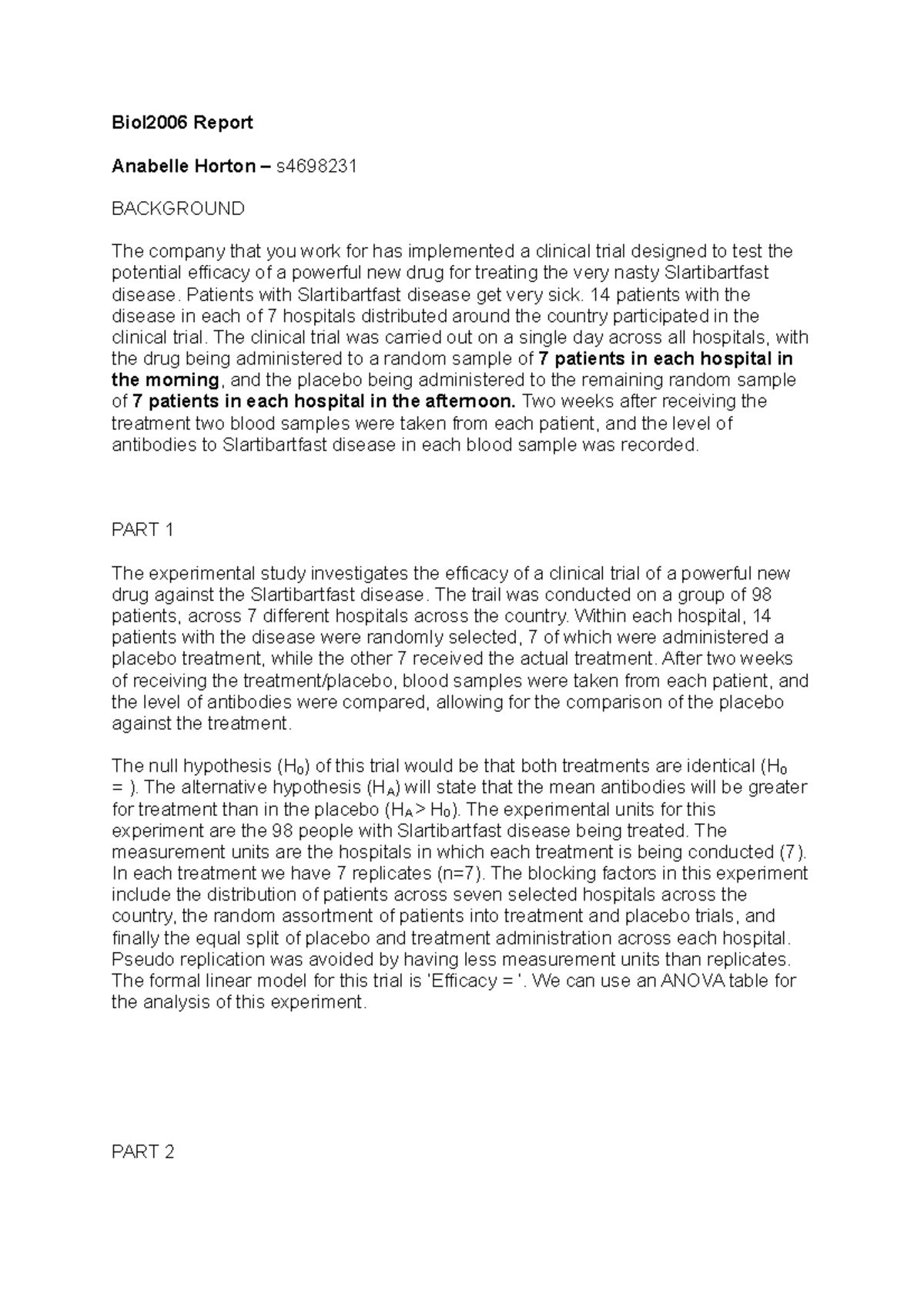 Biostat experimental design report 1 - Part 1 For the purposes of this ...