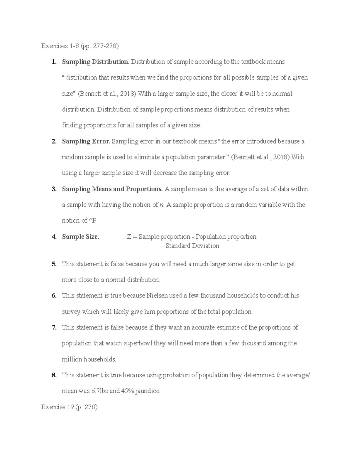 6-2 Exercise Sampling Distributions - Exercises 1-8 (pp. 277-278) 1 ...