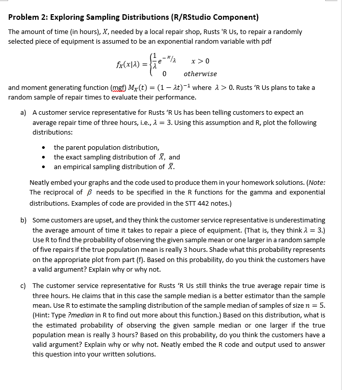 Problem 2: Exploring Sampling Distributions | Chegg.com