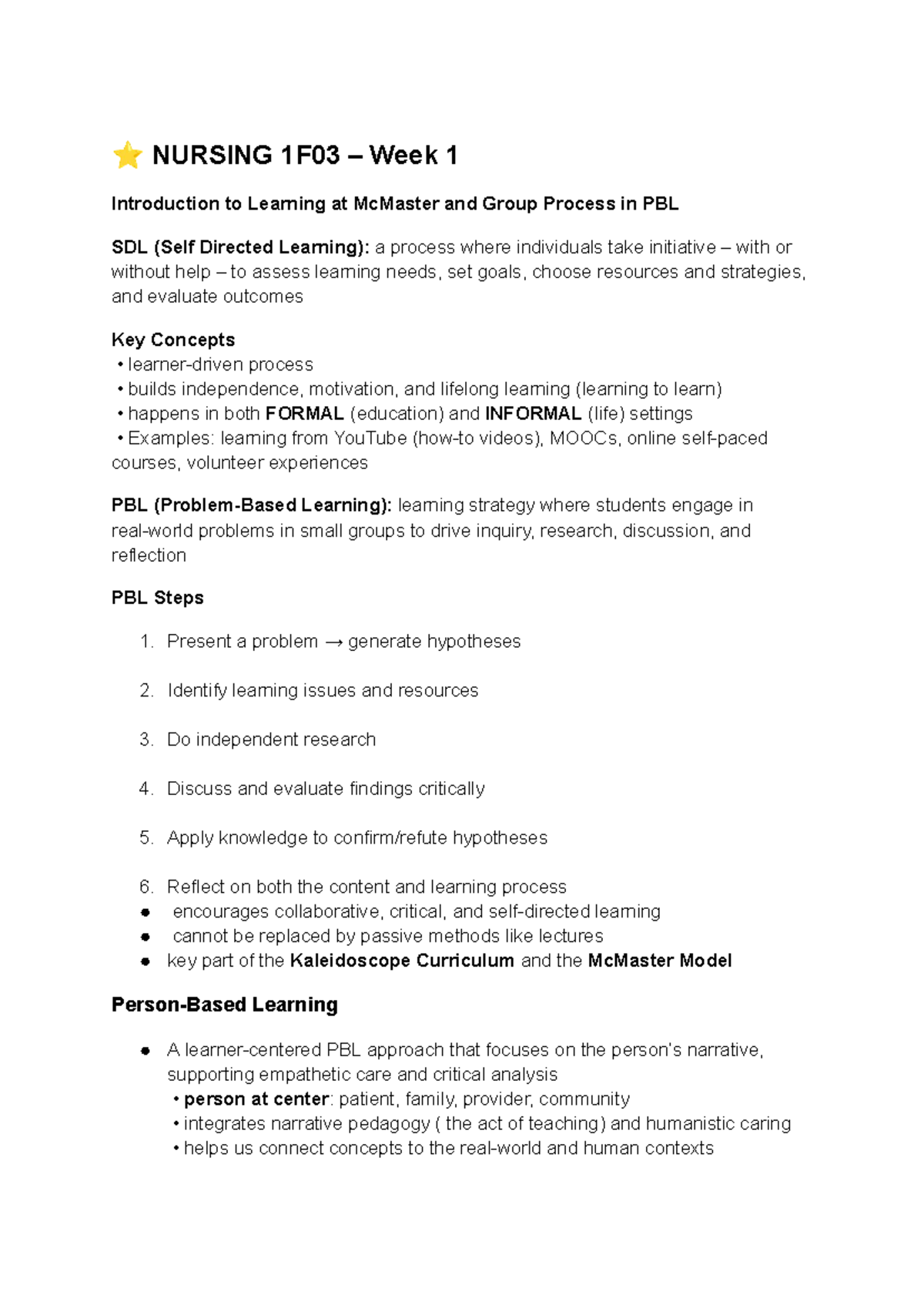 NURSING 1F03 Week 1: Intro to Learning & PBL Process at McMaster - Studocu