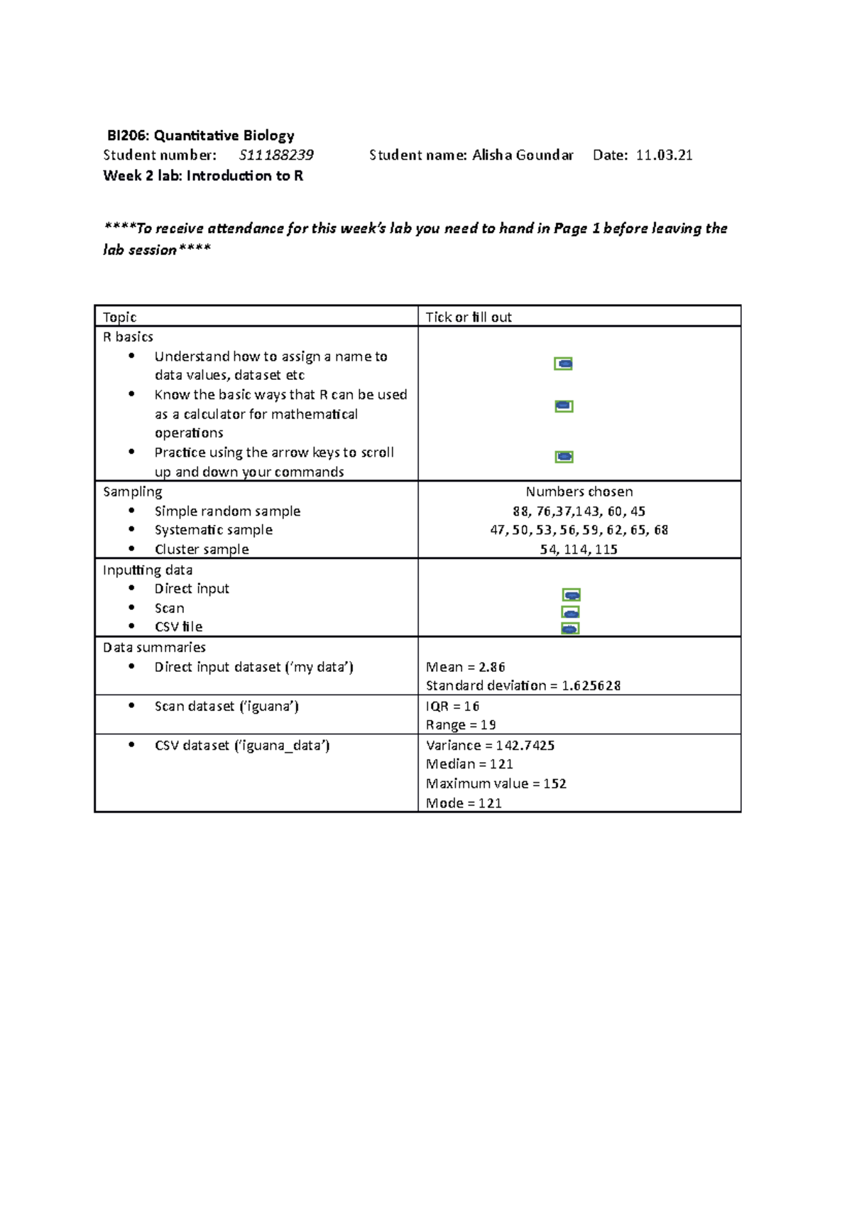BI206 LABORATORY WORK - Quantitative biology - USP - Studocu