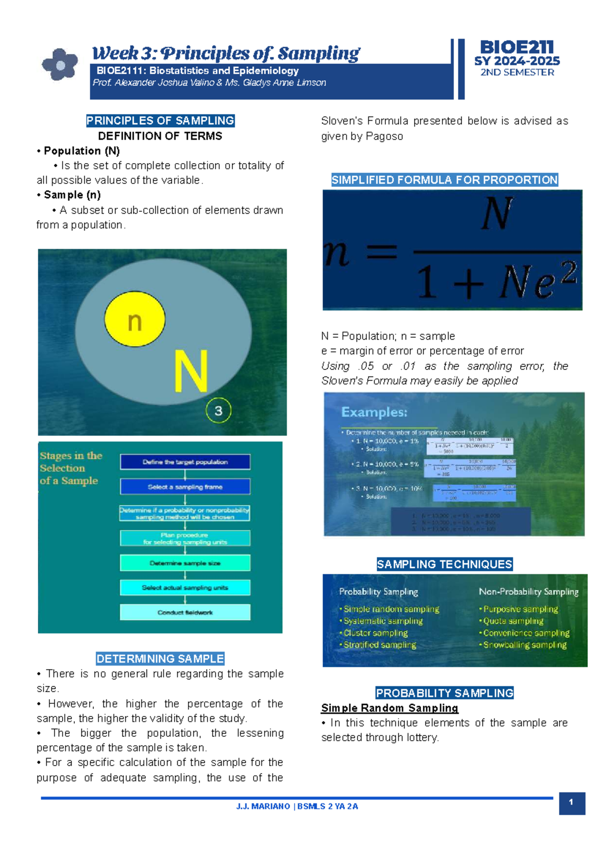 BIOE211 - Week 3: Principles of Sampling in Biostatistics - Studocu