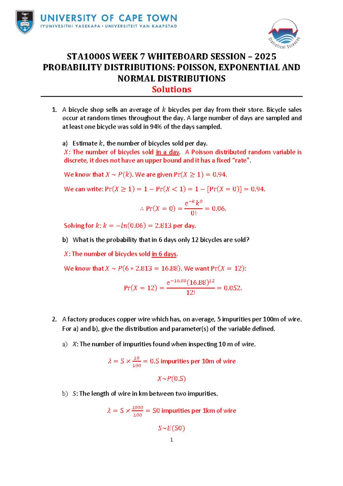 WBS Week 7 STA1000S 2025 Solutions: Poisson, Exponential & Normal ...